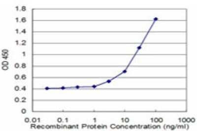 Sandwich ELISA: BNIP1 Antibody (1G7) [H00000662-M01] - Detection limit for recombinant GST tagged BNIP1 is approximately 3ng/ml as a capture antibody.