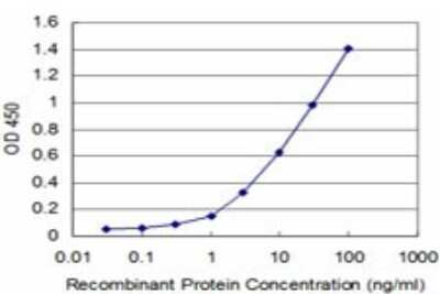 Sandwich ELISA: CARF/CDKN2AIP Antibody (2E6) [H00055602-M04] - Detection limit for recombinant GST tagged CARF is approximately 1ng/ml as a capture antibody.