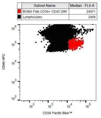 Flow (Cell Surface): CD34 Antibody (4H11[APG]) [NB500-608] - Surface staining of CD34+ cells in human peripheral blood