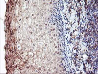 Immunohistochemistry-Paraffin: CRALBP Antibody (1G6) [NBP2-00968] Staining of paraffin-embedded Human tonsil using anti-CRALBP mouse monoclonal antibody.