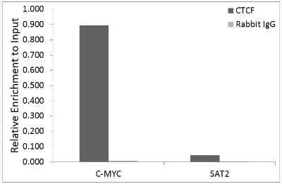 Chromatin Immunoprecipitation: CTCF Antibody (4W9B0) [NBP3-15795] - Chromatin immunoprecipitation analysis of extracts of 293T cells, using CTCF antibody (NBP3-15795) and rabbit IgG.The amount of immunoprecipitated DNA was checked by quantitative PCR. Histogram was constructed by the ratios of the immunoprecipitated DNA to the input.