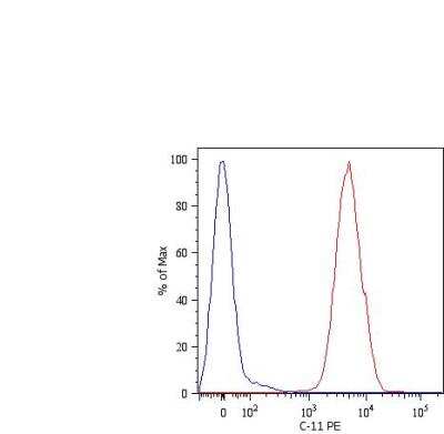 Flow Cytometry: pan Cytokeratin Antibody (C-11) [DyLight 594] [NBP1-48348DL594] - Intracellular flow cytometry analysis of cytokeratin expression in HeLa cells using the APC conjugate.