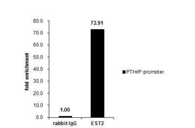 Chromatin Immunoprecipitation: ETS2 Antibody [NBP2-14951] - Cross-linked ChIP was performed with MCF-7 chromatin extract and 5 ug of either control rabbit IgG or anti-ETS2 antibody. The precipitated DNA was detected by PCR with primer set targeting to PTHrP promoter.