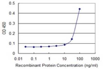 Sandwich ELISA: FIBP Antibody (1E5) [H00009158-M01] - Detection limit for recombinant GST tagged FIBP is 10 ng/ml as a capture antibody.
