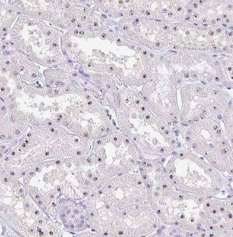 Staining of human kidney shows strong nuclear positivity in cells in tubules.Applications for FTSJ3 Antibody - BSA Free