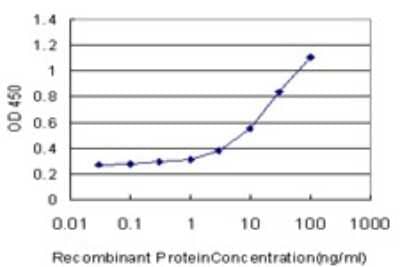 Sandwich ELISA: Granulin Antibody (1F5) [H00002896-M01] - Detection limit for recombinant GST tagged GRN is approximately 1ng/ml as a capture antibody.