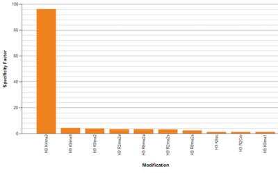 Common histone modifications include methylation of lysine and arginine, acetylation of lysine, phosphorylation of threonine and serine, and sumoylation, biotinylation, and ubiquitylation of lysine. Posttranslational modifications such as acetylation of core histones regulates gene expression, thus altering protein function and regulation (1). Histone H3 is primarily acetylated at lysines 9, 14, 18, and 23 and have a theoretical molecular weight of 15 kDa. Acetylation at lysine 9 and 14 appears to control histone deposition, chromatin assembly and active transcription. Methylation of arginine residues within histone H3 has also been linked to transcription regulation. Histone H3 has been linked to various types of cancer as a biomarker through the aberrant expression of histone deacetylase (HDAC) enzymes and changes to chromatins (2-4).
