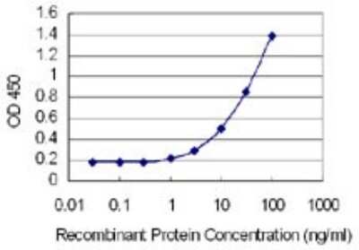 Sandwich ELISA: HN1L Antibody (1G8) [H00090861-M05] - Detection limit for recombinant GST tagged HN1L is 0.3 ng/ml as a capture antibody.