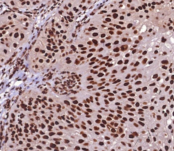 Immunohistochemistry-Paraffin: 1-2ug/ml for 30 minutes at RT. Staining of formalin-fixed tissues requires heating tissue sections in 10mM Tris with 1mM EDTA, pH 9.0, for 45 min at 95C followed by cooling at RT for 20 minutes. Optimal dilution for a specific application should be determined.