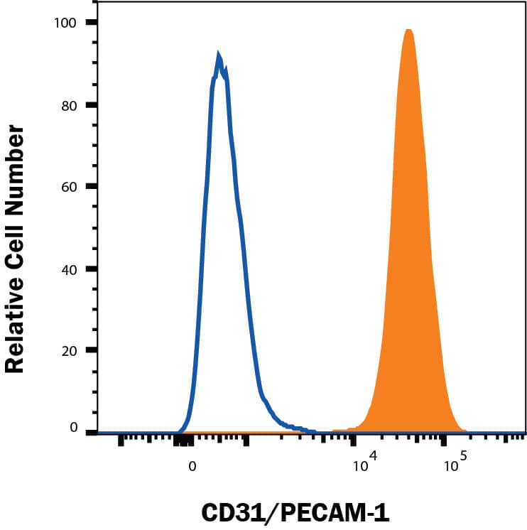 Detection of CD31/PECAM-1 in HUVEC cells by Flow Cytometry.