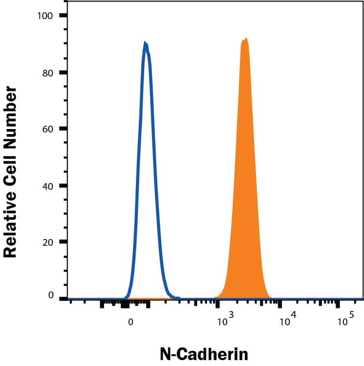 Detects human, mouse, and rat N‑Cadherin in Western blots. In direct ELISA, less than 10% cross-reactivity with recombinant human(rh) E-Cadherin, and rhR-Cadherin is observed.