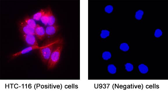 Sample: Immersion fixed HTC-116 Human Colorectal Carcinoma cells (Positive control) and U-937 Human Histiocytic Lymphoma cells (Negative control)