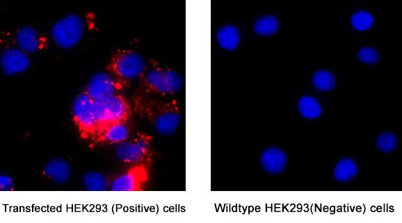 Sample: Immersion fixed Transfected HEK293 Human Embryonic Kidney Cell Line (Positive) And Wild Type HEK293 Human Embryonic Kidney Cell Line (Negative) Cells