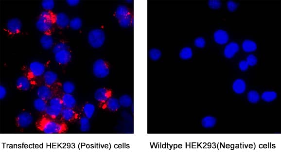 Sample: Immersion fixed Transfected HEK293 Human Embryonic Kidney Cell Line (Positive) And Wild Type HEK293 Human Embryonic Kidney Cell Line (Negative) Cells