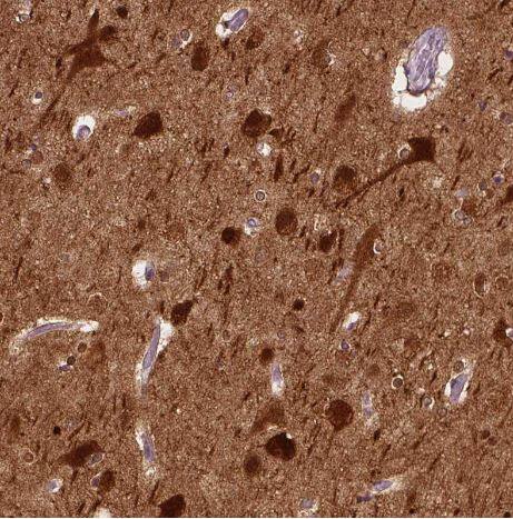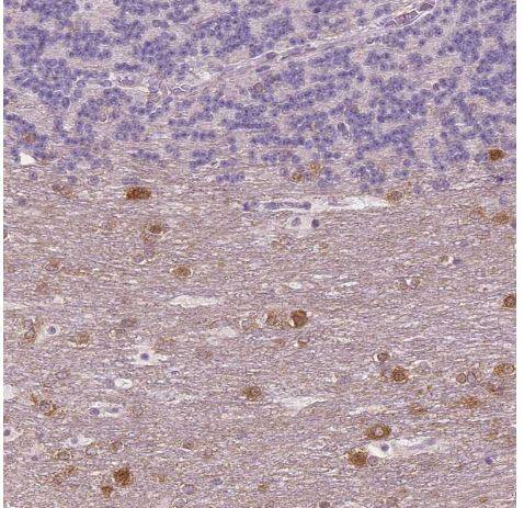 Staining of human cerebral cortex shows strong cytoplasmic positivity in neurons.Applications for NECAB1 Antibody (CL0580) - BSA Free