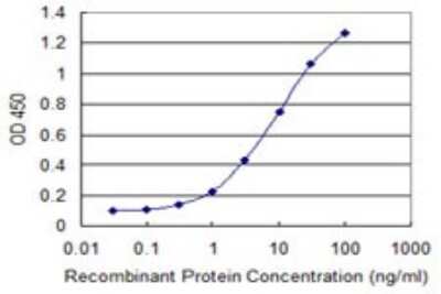 Sandwich ELISA: NKRF Antibody (1F6) [H00055922-M06] - Detection limit for recombinant GST tagged NKRF is 0.1 ng/ml as a capture antibody.
