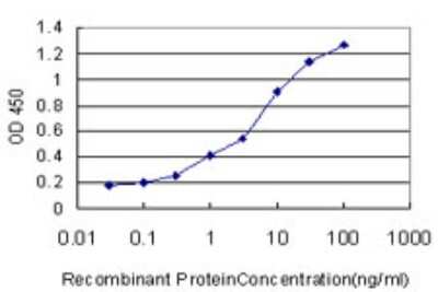 Sandwich ELISA: NR4A3/NOR1 Antibody (1E11) [H00008013-M06] - Detection limit for recombinant GST tagged NR4A3 is approximately 0.1ng/ml as a capture antibody.