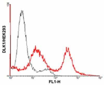 Pref-1/DLK1/FA1 Antibody (PF299-1) [NBP2-80047] - FACS: DLK1-transfected HEK 293 (Full length) cells were stained significantly using anti-DLK1 (human), mAb (PF299-1).