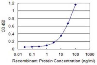 Sandwich ELISA: PRMT3 Antibody (3G4) [H00010196-M16] - Detection limit for recombinant GST tagged PRMT3 is 0.3 ng/ml as a capture antibody.