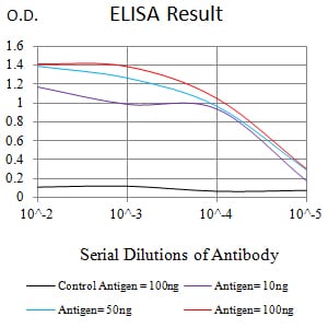 ELISA: RbAp46 Antibody (2A10C2) [NBP3-27151] - Black line: Control Antigen (100 ng); Purple line: Antigen (10 ng); Blue line: Antigen (50 ng); Red line: Antigen (100 ng)Applications for RbAp46 Antibody (2A10C2) - BSA Free