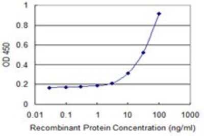 Sandwich ELISA: Stonin-1 Antibody (1F3) [H00011037-M01] - Detection limit for recombinant GST tagged STON1 is 1 ng/ml as a capture antibody.
