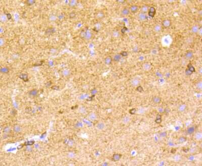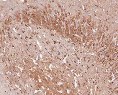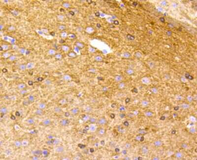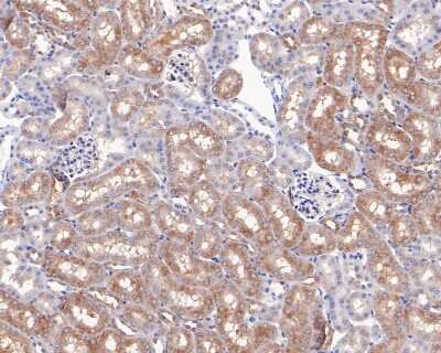 Immunohistochemistry-Paraffin: Tau [p Ser396] Antibody (SN62-09) [NBP2-67702] - Analysis of paraffin-embedded mouse kidney tissue with Rabbit anti-Tau [p Ser396] antibody washed with ddH2O and PBS, and then probed with the primary antibody at 1/200 dilution for 1 hour at room temperature. The detection was performed using an HRP conjugated compact polymer system. DAB was used as the chromogen. Tissues were counterstained with hematoxylin and mounted with DPX.