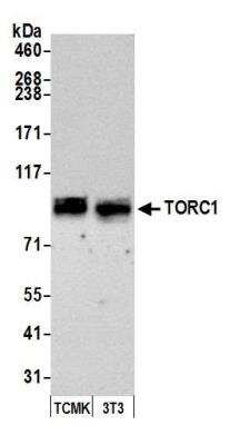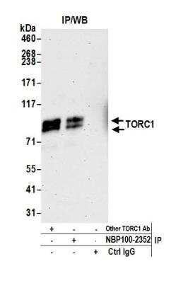 Novus Biologicals Rabbit TORC1 Antibody (NB100-2352) is a polyclonal antibody validated for use in IHC, WB and IP. All Novus Biologicals antibodies are covered by our 100% guarantee.