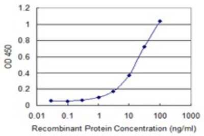 Sandwich ELISA: TUFM Antibody (1A2) [H00007284-M03] - Detection limit for recombinant GST tagged TUFM is 0.3 ng/ml as a capture antibody.