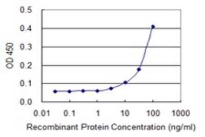 Sandwich ELISA: UbcH8/Ube2L6 Antibody (2F12-1F4) [H00009246-M01] - Detection limit for recombinant GST tagged UBE2L6 is 3 ng/ml as a capture antibody.