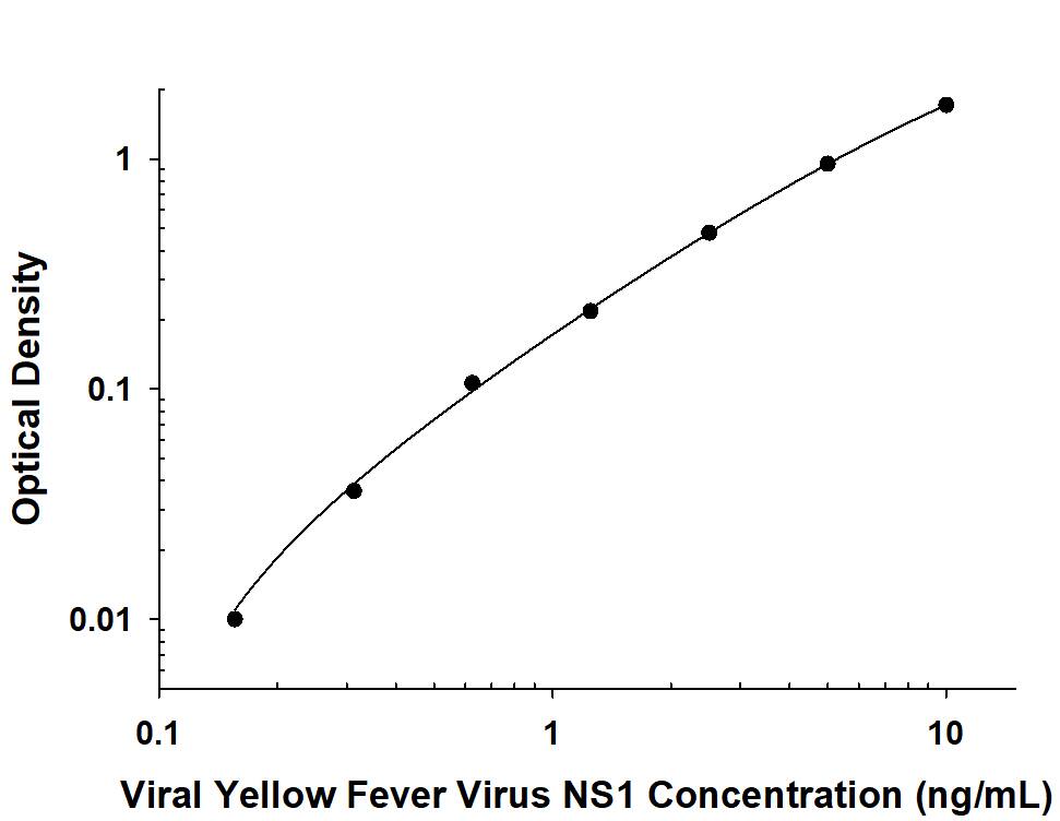 Viral Yellow Fever Virus NS1 ELISA Standard Curve.