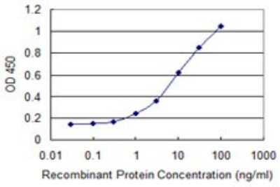 Sandwich ELISA: ZSCAN16 Antibody (4A9) [H00080345-M01] - Detection limit for recombinant GST tagged ZSCAN16 is 0.3 ng/ml as a capture antibody.