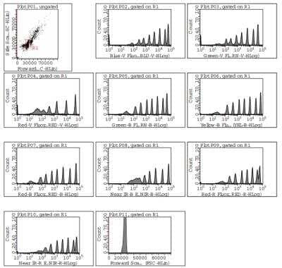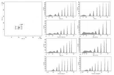 Rainbow Calibration Particle Set (8 peaks) [NBP3-00504] - Dot plot and histogram of NBP3-00504 from a BD Bioscience LSRFortessa(TM) X-20.
