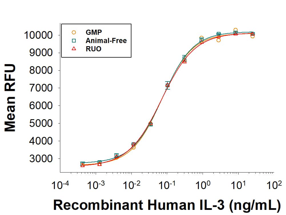 Equivalent Bioactivity of GMP, Animal-Free, and RUO grades of Recombinant Human IL-3.