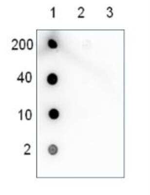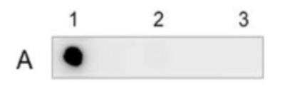 Dot Blot: 5-hmC Antibody (C.15220001) [NBP2-59178] - (A): Approximately 200 ng, equivalent 10 pmol of C-bases, of the hmC (1), mC (2) and C (3) PCR controls were spotted on a membrane (Amersham Hybond-N+). The membrane was incubated with 5-hmC Antibody (C.15220001) followed by an HRP conjugated anti-rat secondary antibody. The membrane was exposed for 30 seconds.
