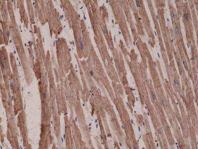Immunohistochemistry: Actin Alpha 1 Cardiac Muscle Antibody (RM257) [NBP2-61474] - Immunohistochemical staining of FFPE Human heart tissue sections using NBP2-61474 at a 1:1000 dilutionApplications for Actin Alpha 1 Cardiac Muscle Antibody (RM257)