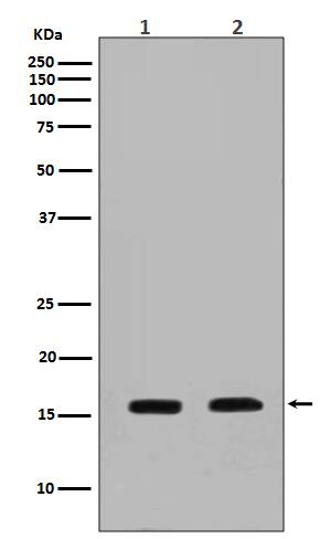 Western Blot: Calmodulin Antibody (SR2721) [NBP3-27709] - Western blot analysis of Calmodulin expression in (1) NIH-3T3 cell lysate; (2) MCF-7 cell lysate.Applications for Calmodulin Antibody (SR2721) - BSA Free