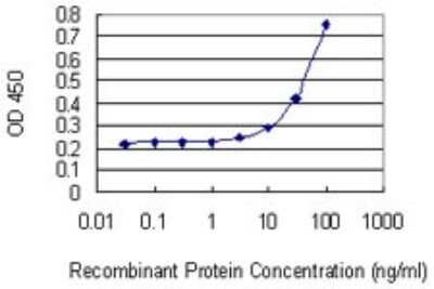Sandwich ELISA: CDC2L6 Antibody (3D7) [H00023097-M01] - Detection limit for recombinant GST tagged CDC2L6 is 1 ng/ml as a capture antibody.