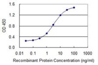 Sandwich ELISA: CHFR Antibody (2B11) [H00055743-M08] - Detection limit for recombinant GST tagged CHFR is 0.03 ng/ml as a capture antibody.