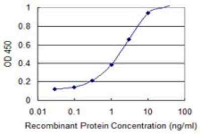 Sandwich ELISA: DFF45/ICAD Antibody (3A11) [H00001676-M05] - Detection limit for recombinant GST tagged DFFA is 0.1 ng/ml as a capture antibody.