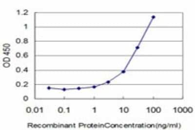 Sandwich ELISA: eIF4GII Antibody (1D7) [H00008672-M02] - Detection limit for recombinant GST tagged EIF4G3 is approximately 1ng/ml as a capture antibody.