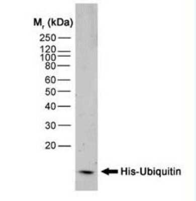 Western Blot: 6-Histidine Epitope Tag Antibody (AD1.1.10) [HRP] [NB100-63173] - His-Ubiquitin recombinant protein probed with Mouse anti Histidine Tag.