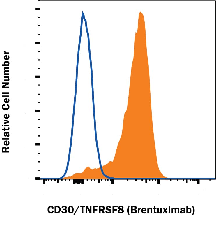 Detection of CD30/TNFRSF8 in Jurkat human acute T cell leukemia cell line by Flow Cytometry.