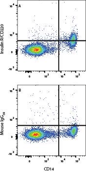 Detection of Insulin R/CD220 in NS0 Mouse Cell Line Transfected with Human Insulin R/CD220 by Flow Cytometry.
