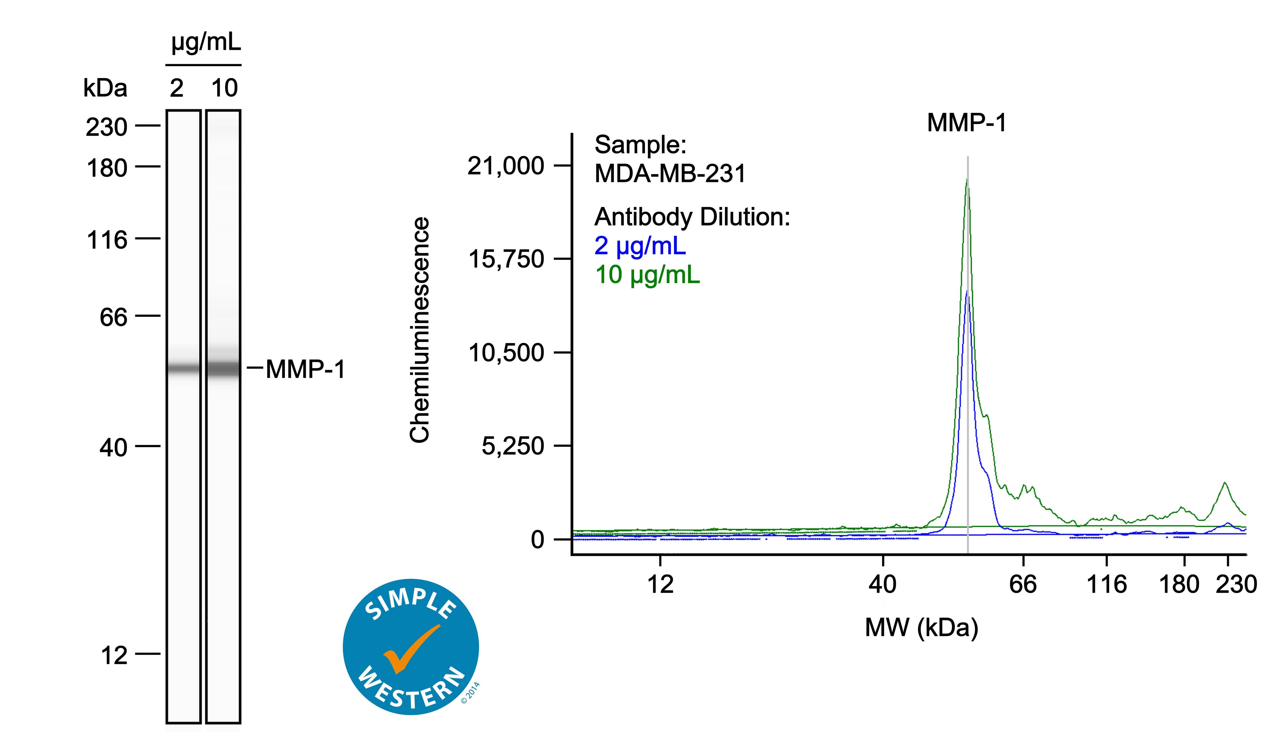Detection of Human MMP-1 by Simple WesternTM.