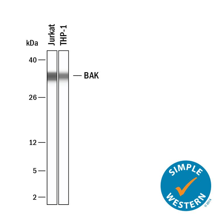 Detection of Human/Mouse/Rat BAK by Western Blot.
