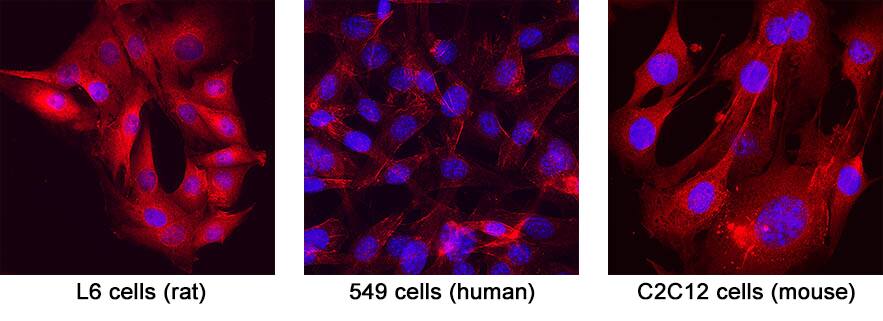 Sample: A549 human lung carcinoma cell line, C2C12 mouse myoblast cell line, and L6 rat myoblast cell line