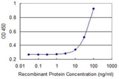 Sandwich ELISA: LATS1 Antibody (3A7) [H00009113-M09] - Detection limit for recombinant GST tagged LATS1 is approximately 10ng/ml as a capture antibody.