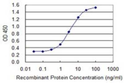 Sandwich ELISA: MAGEB1 Antibody (3C1) [H00004112-M09] - Detection limit for recombinant GST tagged MAGEB1 is 0.1 ng/ml as a capture antibody.