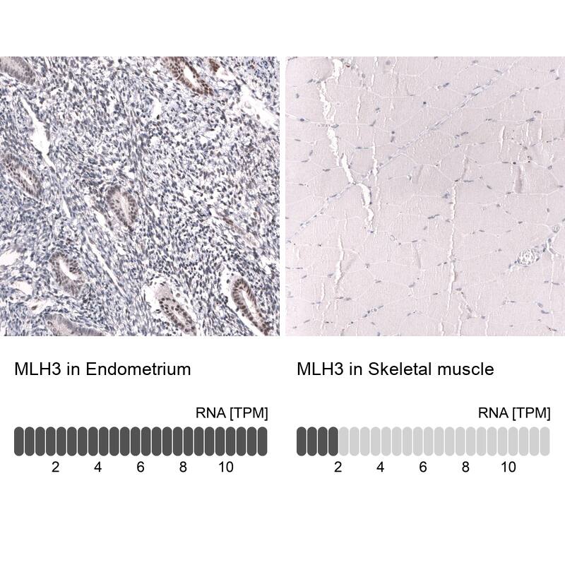 Staining of human endometrium shows moderate nuclear positivity in glandular cells.Immunohistochemistry-Paraffin: MLH3 Antibody (CL14096) [NBP3-24597]