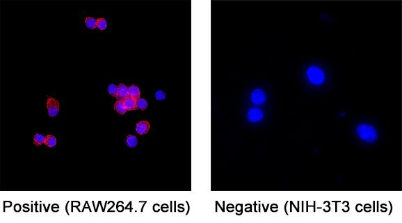 Sample: Immersion fixed RAW264.7 mouse monocyte/macrophage cell line and NIH-3T3 mouse embryonic fibroblast cell line
